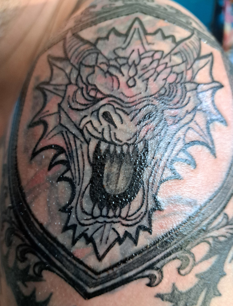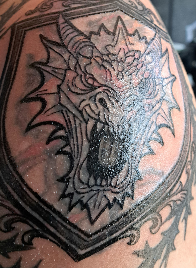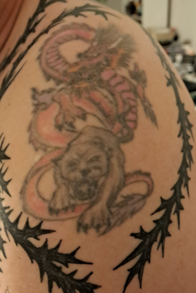 Aujourd’hui j’ai prévu de faire recouvrir mon vieux dragon rouge et la panthère par autre chose…