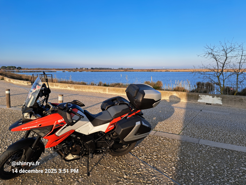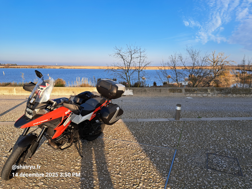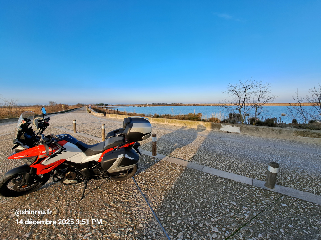Petit trip moto aux Saintes-Maries de la Mer. En passant par Aigues-Mortes, puis directement à la plage.