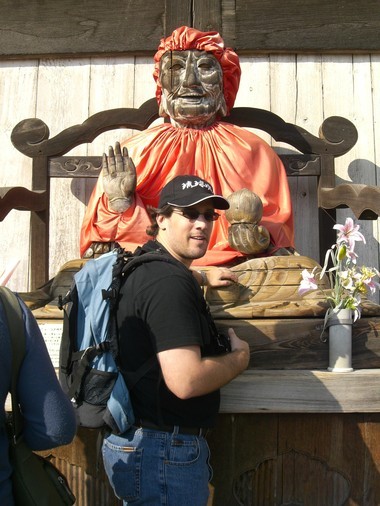 Juste à droite de l’entrée principale a été placée une statue de bois représentant Binzuru-sonja, un saint indien bouddhiste. Sur ses épaules et sur sa tête ont été disposés des vêtements de couleur rouge: des fidèles espèrent ainsi guérir de leur maladie car ce personnage fut un médecin talentueux.