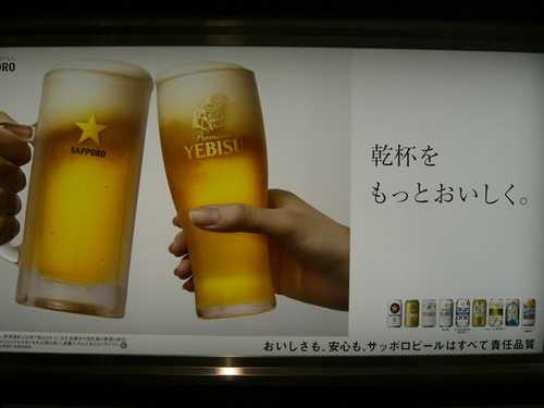 Petite publicité sur la bière Sapporo (qui est la brasserie possédant la bière Yebisu)