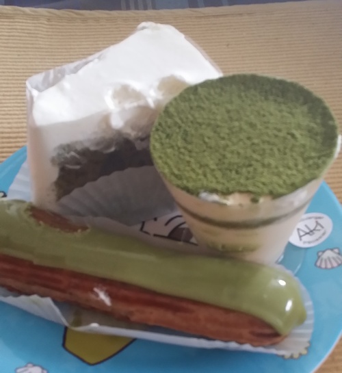 Au programme: un macha chiffon, un tiramisu au macha et un éclair au macha.