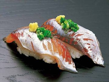 Hikari-mono (光り物): poisson à dos argenté, différentes variétés de poissons brillant (écailles argentée) incluant Aji, Iwashi, Konoshiro, Sanma, Tobiuo